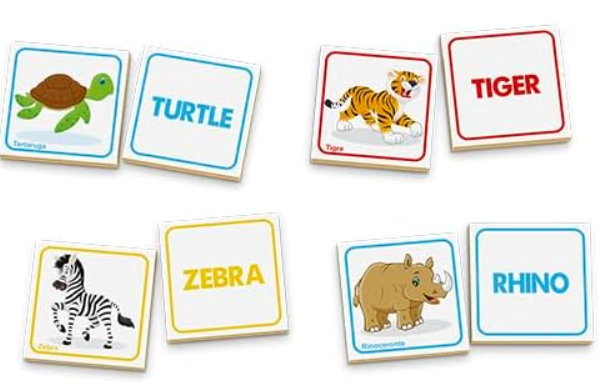 Jogos da memória com 30 peças em madeira de MDF 3mm. Impressão direto na madeira, com o tema animais em inglês.