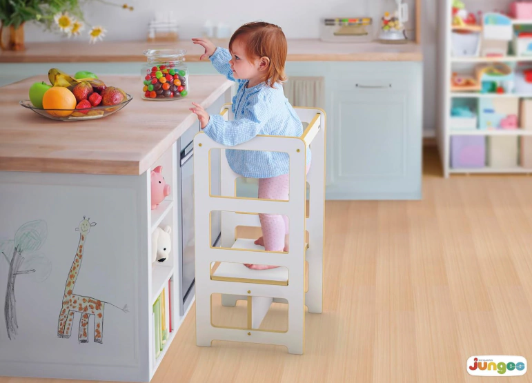 Torre de Aprendizagem Montessoriana em madeira de MDF. Produto 4 em 1: . Cadeirão (de observação) para a criança sentada. TORRE DE APRENDIZAGEM .